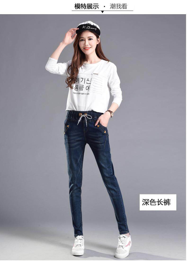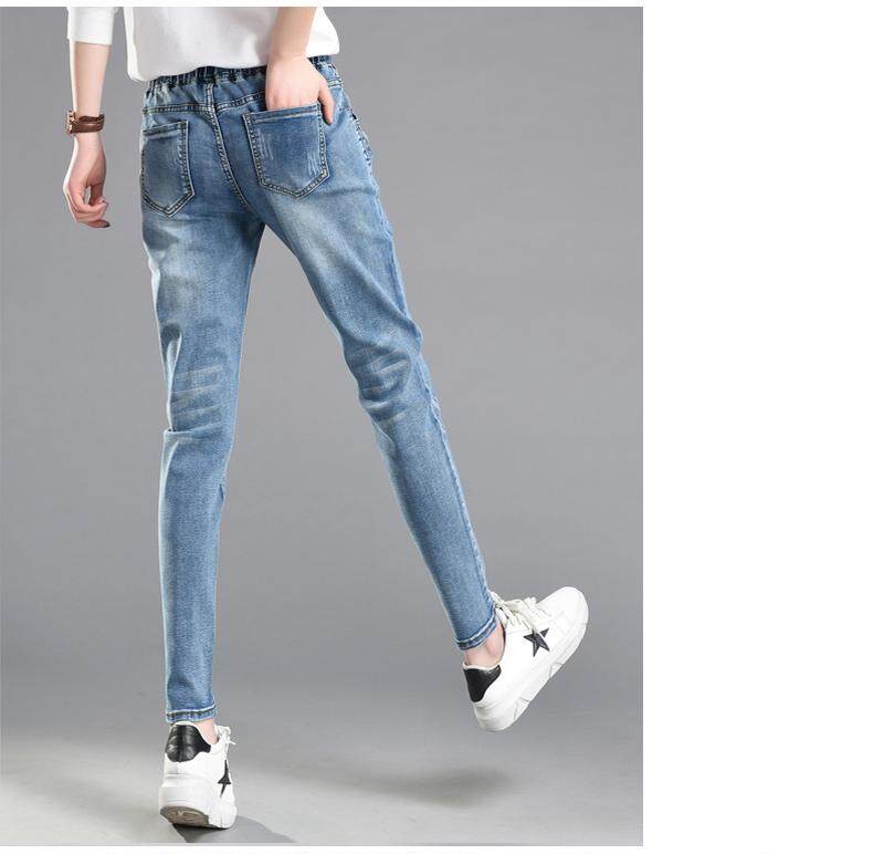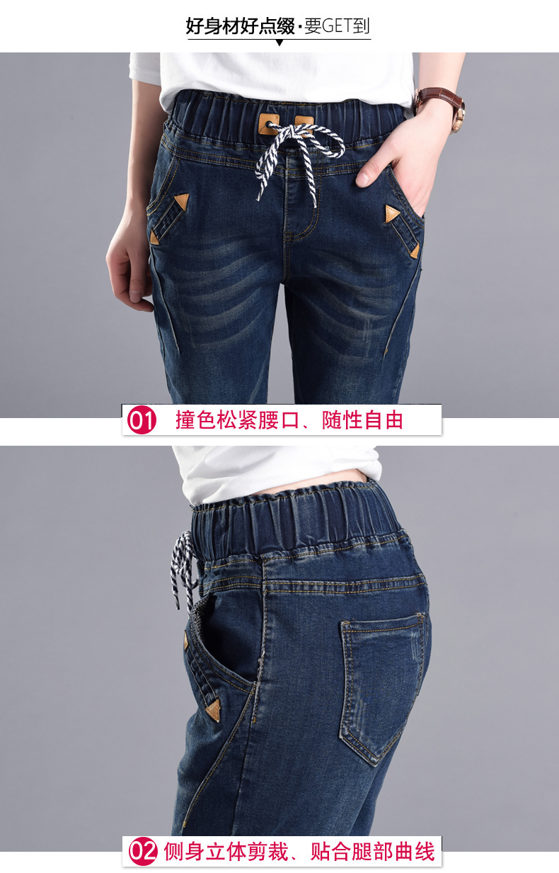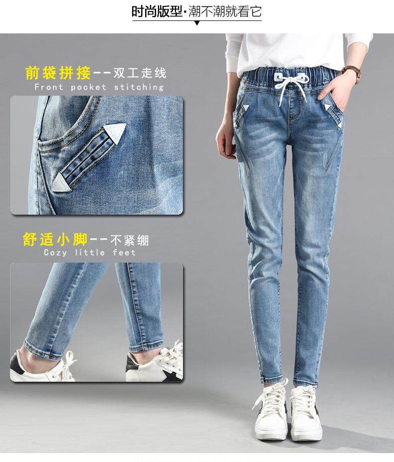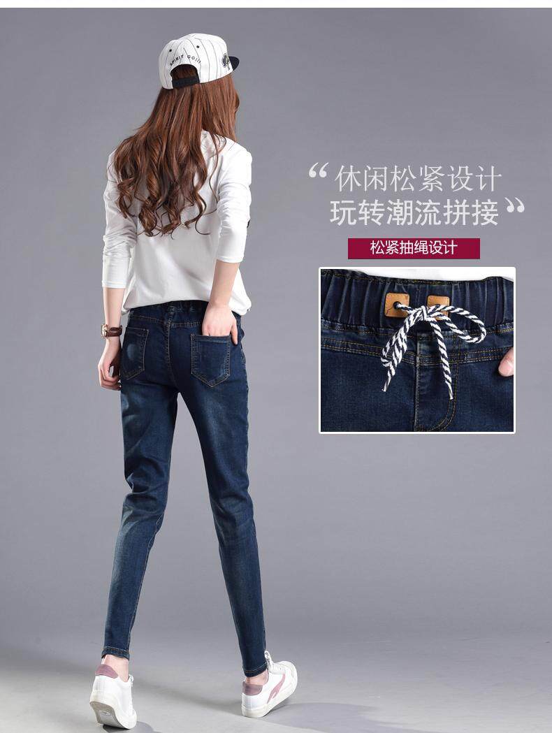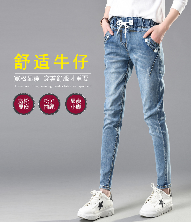 松紧腰高腰牛仔裤女式春秋韩式紧身裤宽松修身裤2021新款哈兰长裤