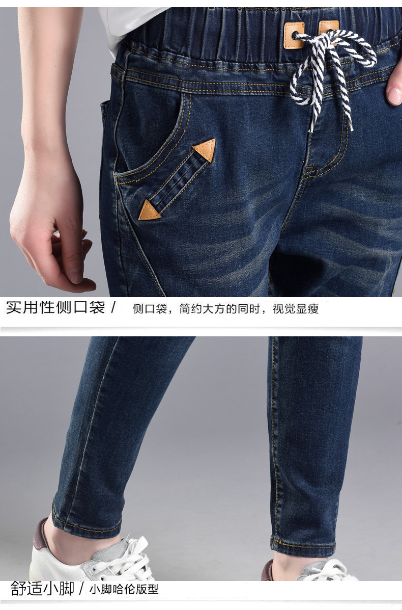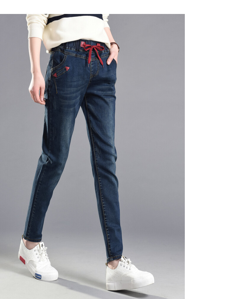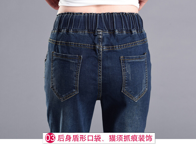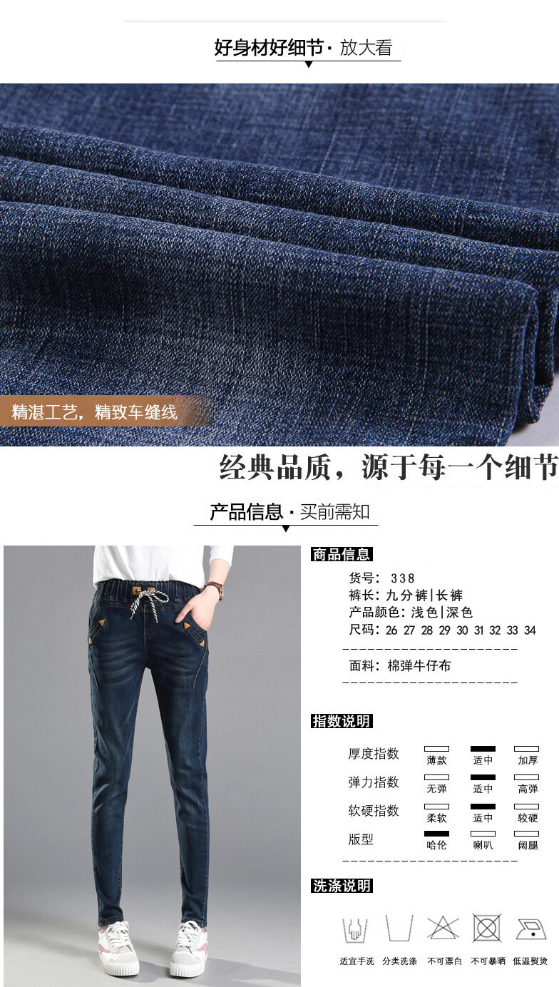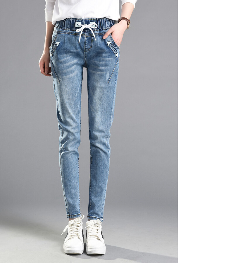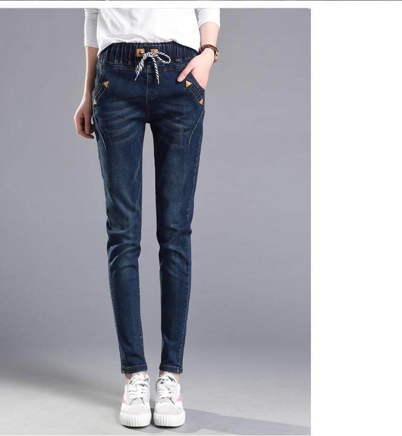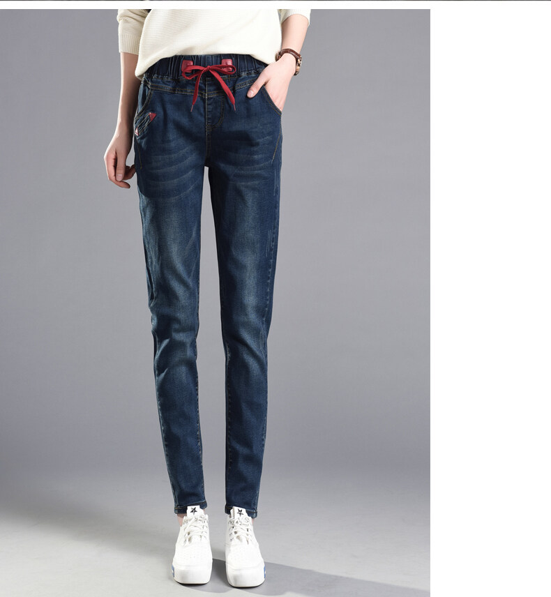 松紧腰高腰牛仔裤女式春秋韩式紧身裤宽松修身裤2021新款哈兰长裤
