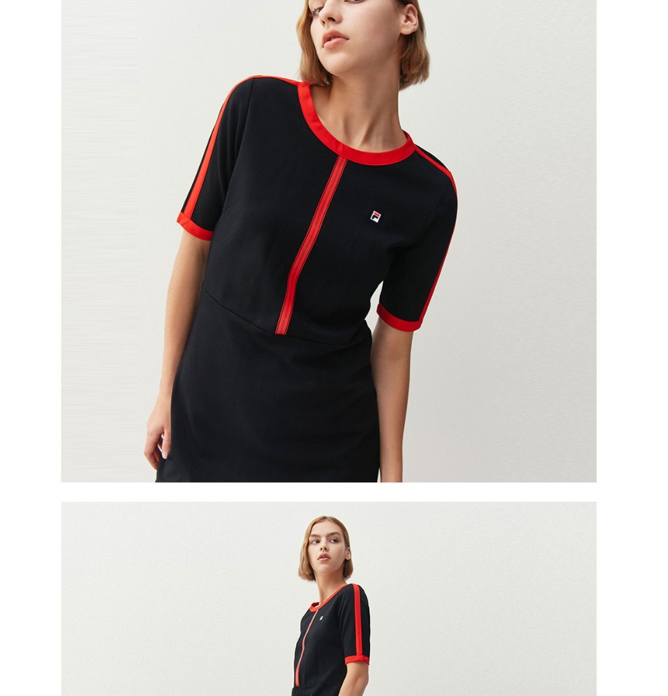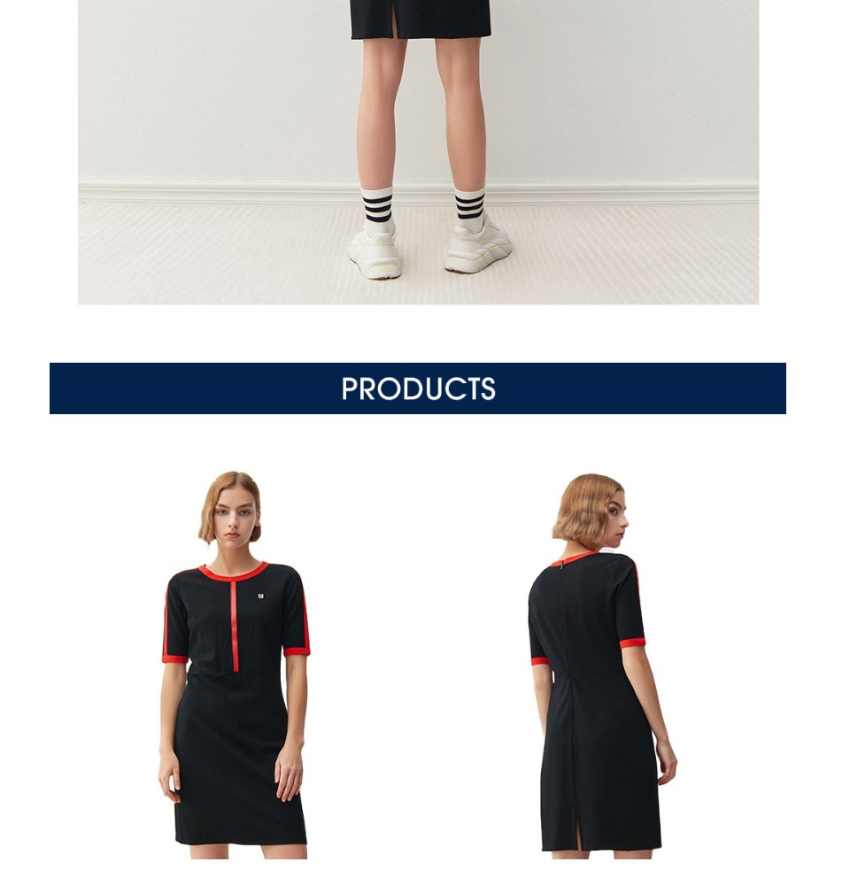 在线独家女式刺绣F-box标志后开叉连衣裙