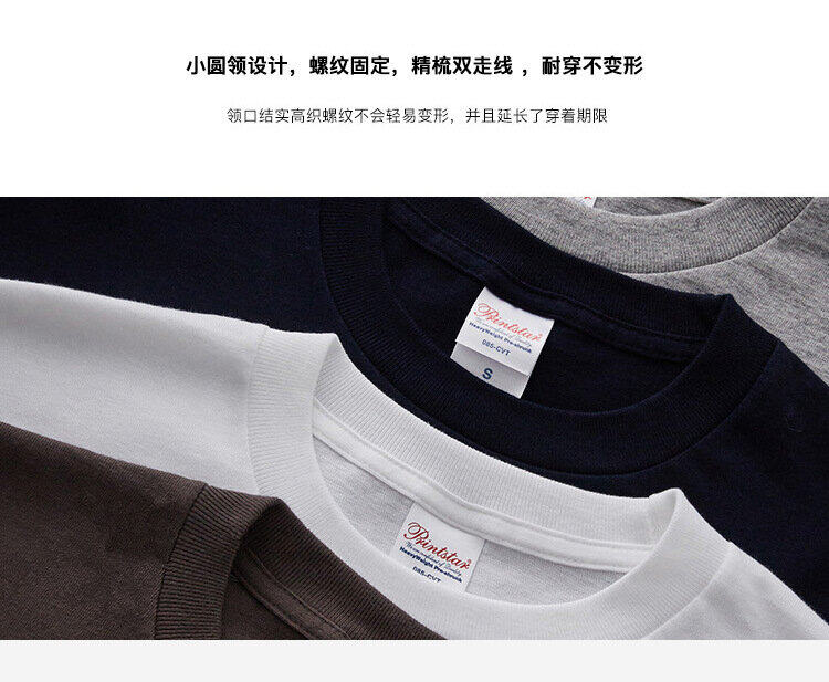 190G Printstar纯棉黑白短袖T恤男女半袖纯色圆领T恤基础款