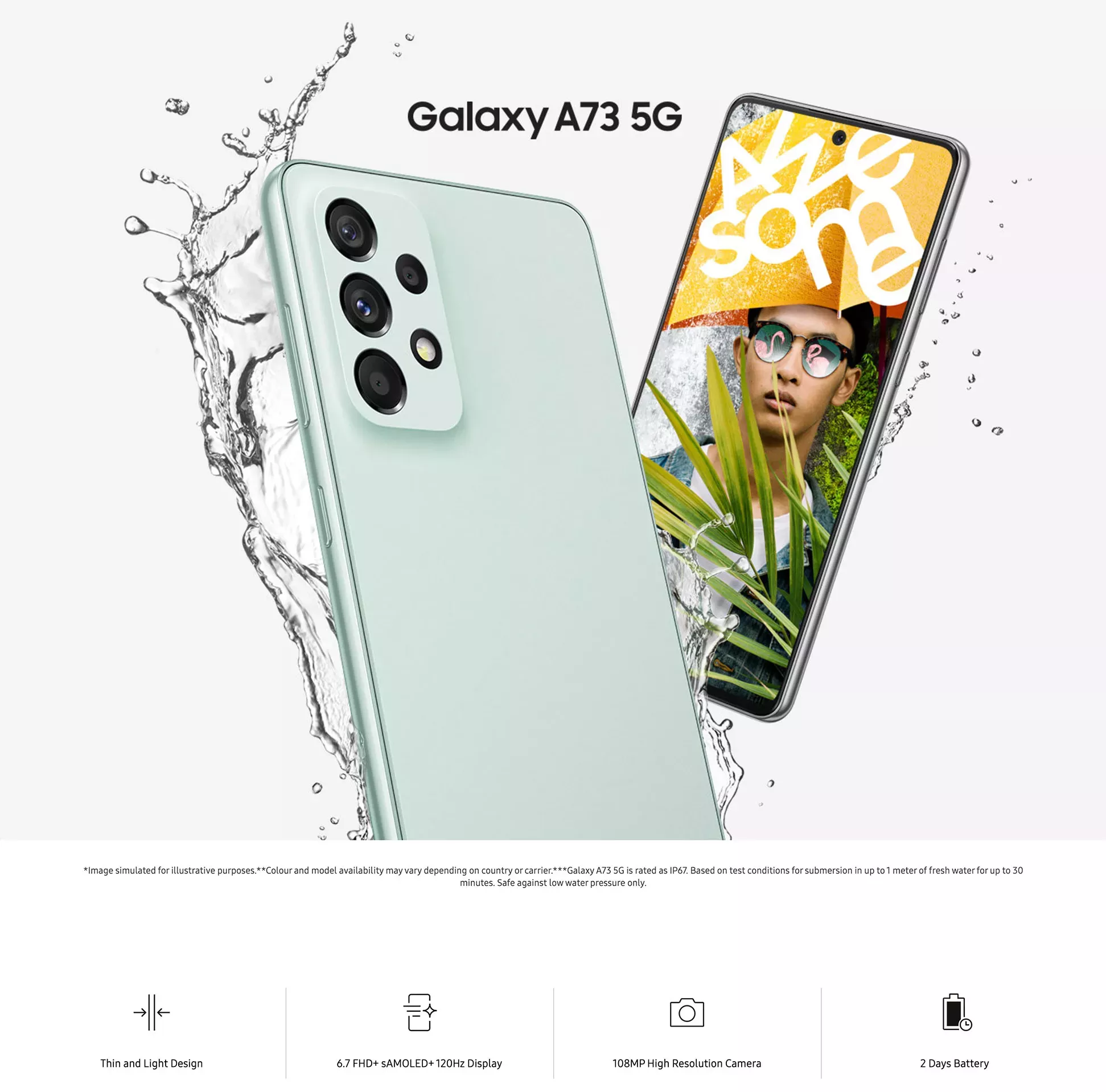 三星Galaxy A73 5G 128GB或256GB(免费:钢化玻璃+后盖)
